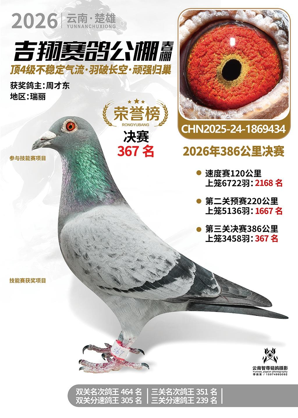 楚雄吉翔公棚(春棚)2026年386公里决赛获奖鸽欣赏