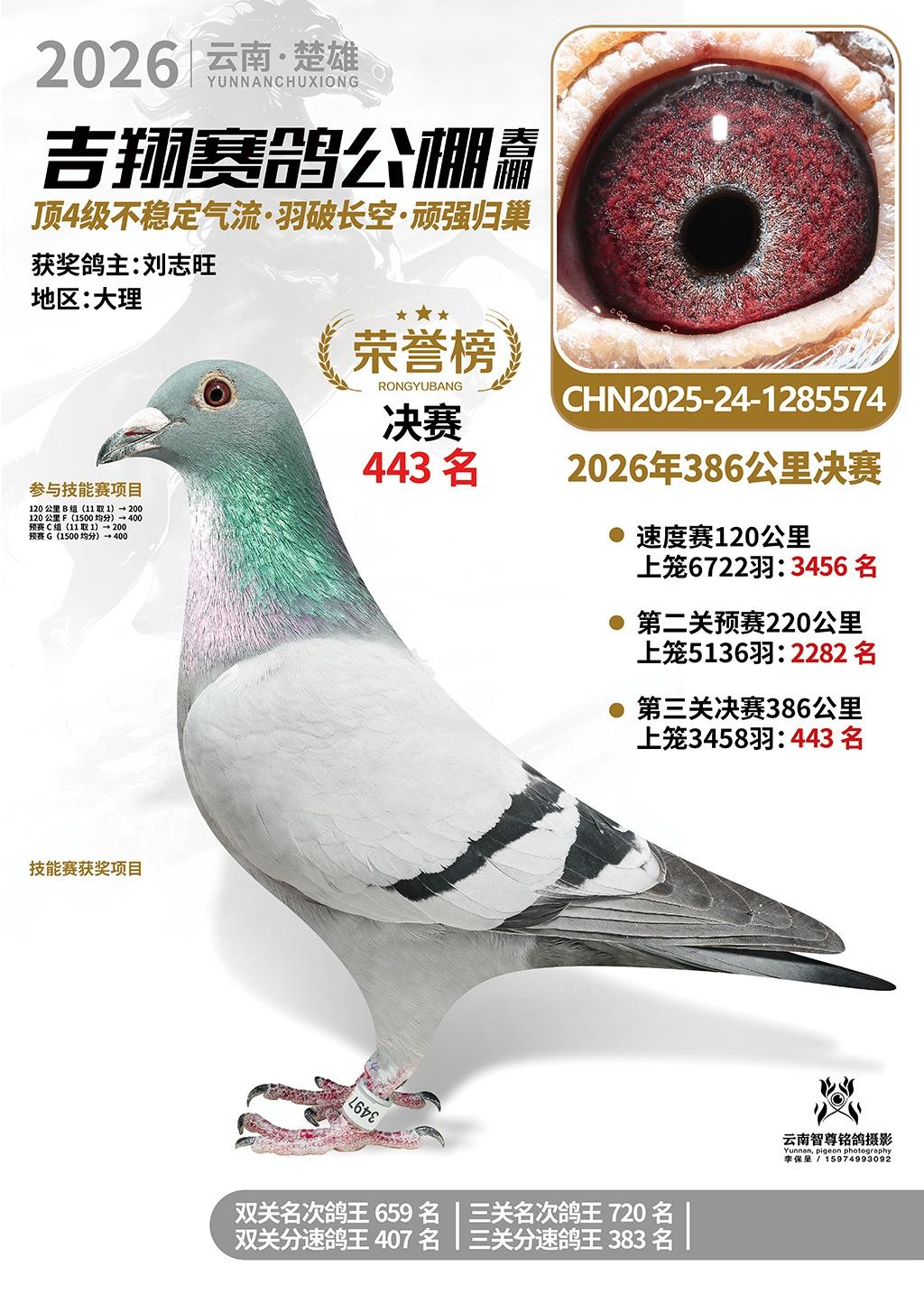 楚雄吉翔公棚(春棚)2026年386公里决赛获奖鸽欣赏