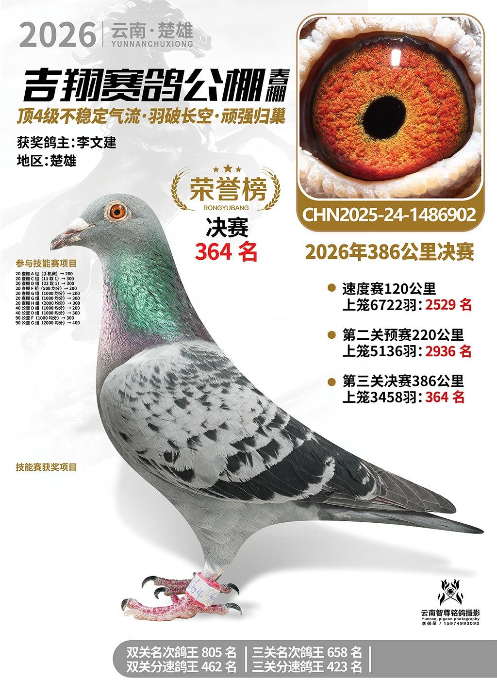 楚雄吉翔公棚(春棚)2026年386公里决赛获奖鸽欣赏