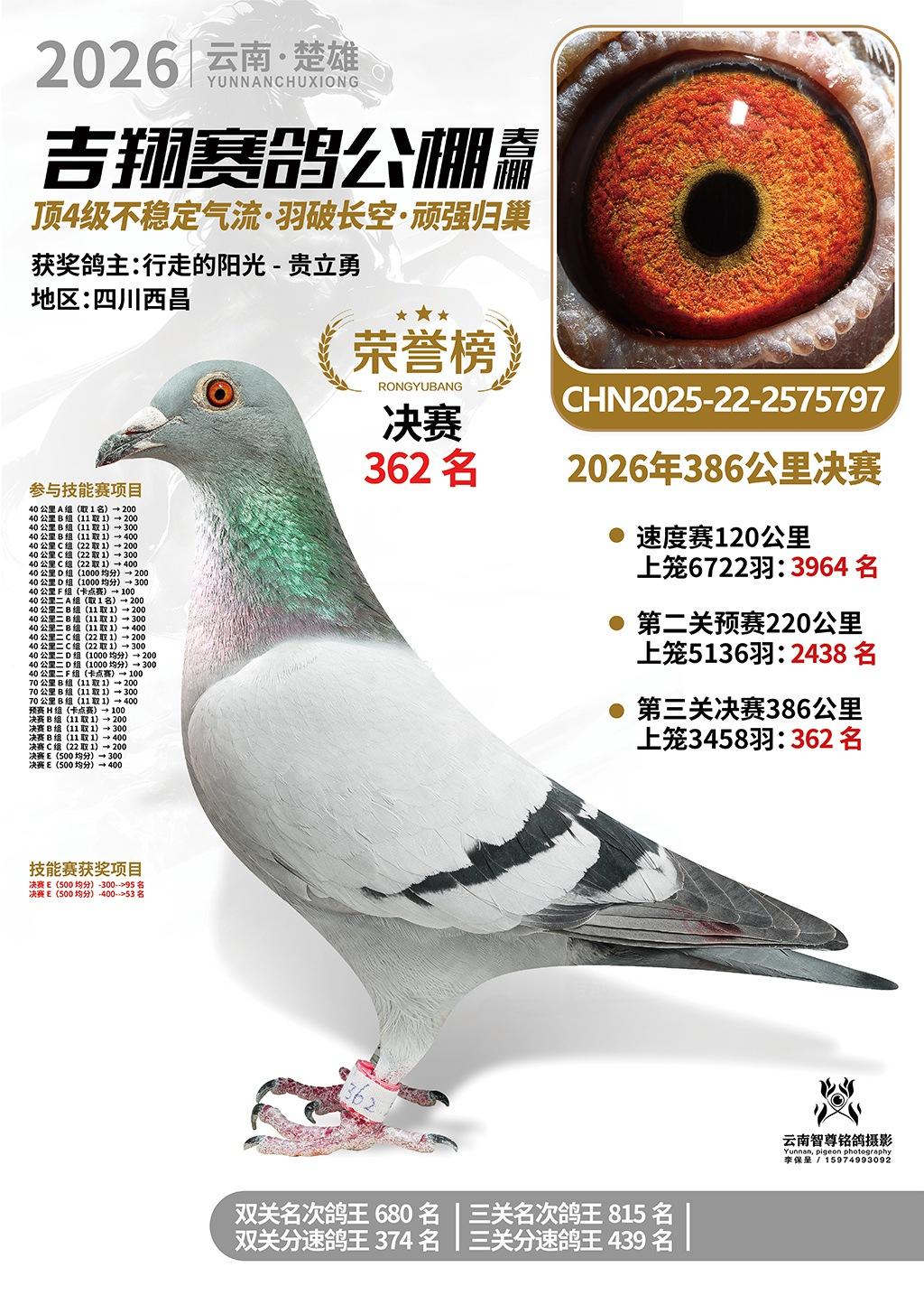 楚雄吉翔公棚(春棚)2026年386公里决赛获奖鸽欣赏