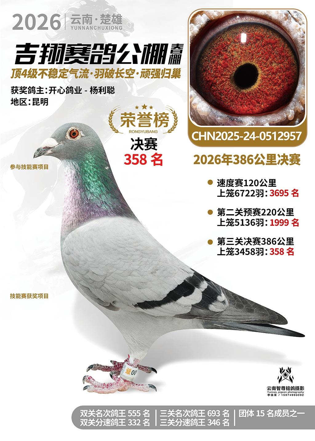 楚雄吉翔公棚(春棚)2026年386公里决赛获奖鸽欣赏