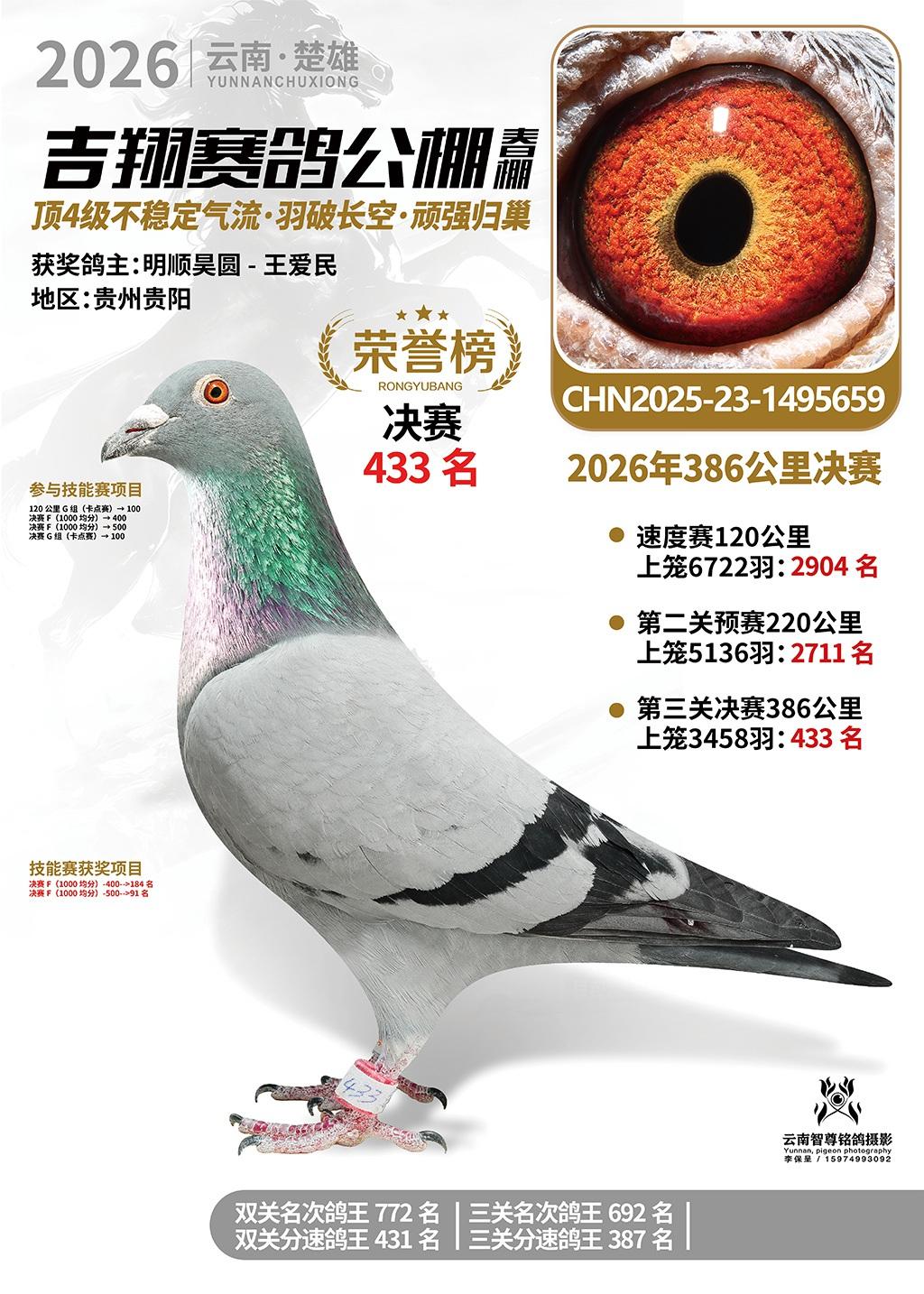 楚雄吉翔公棚(春棚)2026年386公里决赛获奖鸽欣赏