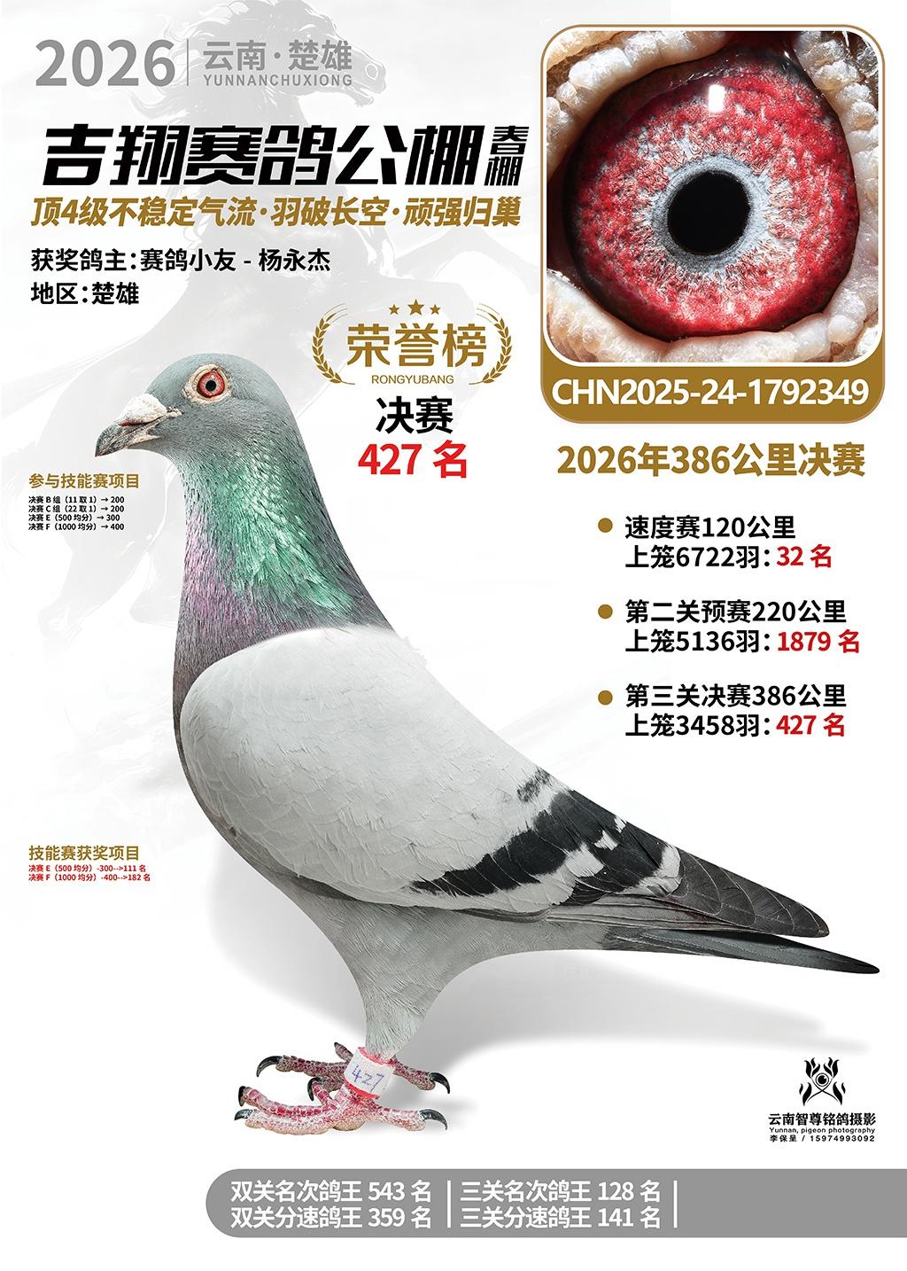 楚雄吉翔公棚(春棚)2026年386公里决赛获奖鸽欣赏