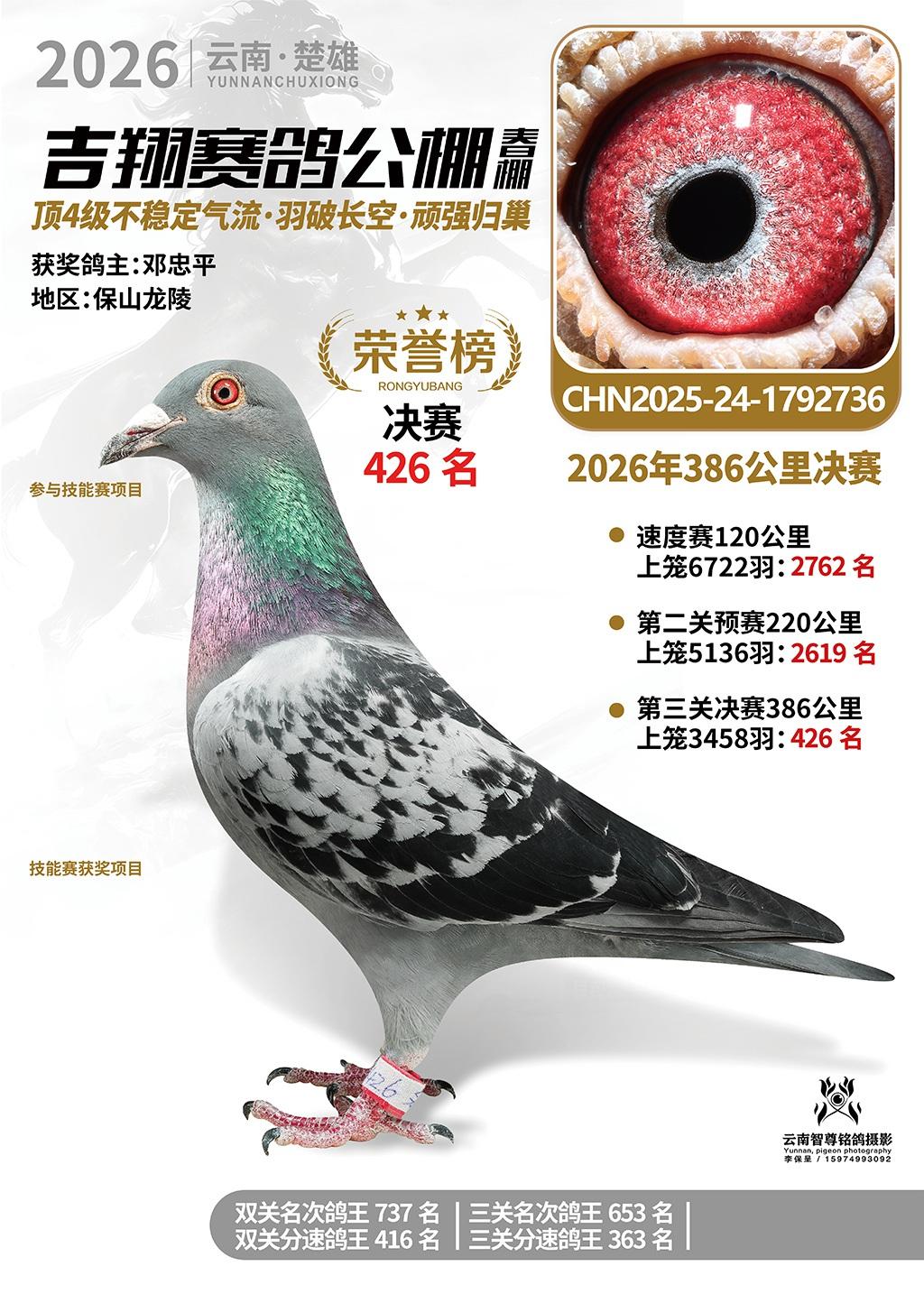 楚雄吉翔公棚(春棚)2026年386公里决赛获奖鸽欣赏