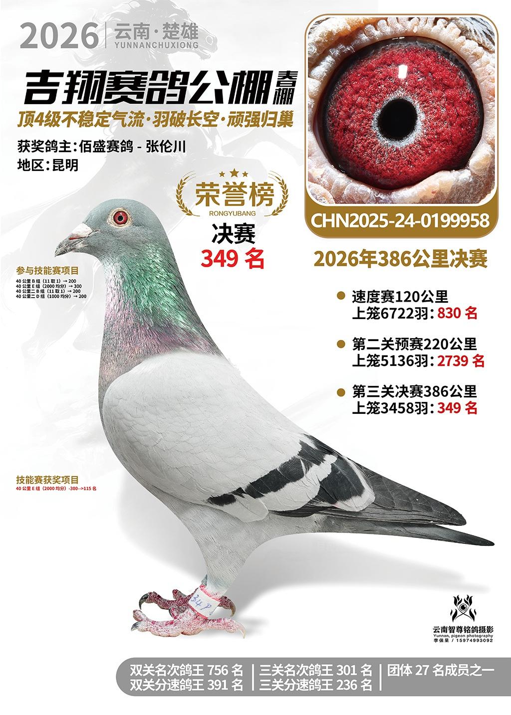 楚雄吉翔公棚(春棚)2026年386公里决赛获奖鸽欣赏
