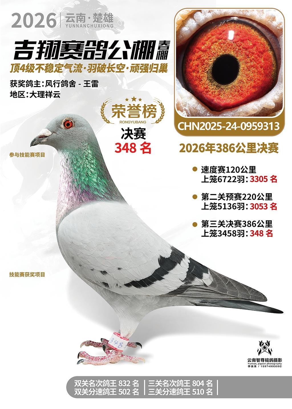 楚雄吉翔公棚(春棚)2026年386公里决赛获奖鸽欣赏