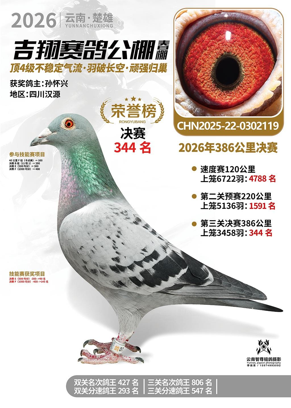 楚雄吉翔公棚(春棚)2026年386公里决赛获奖鸽欣赏