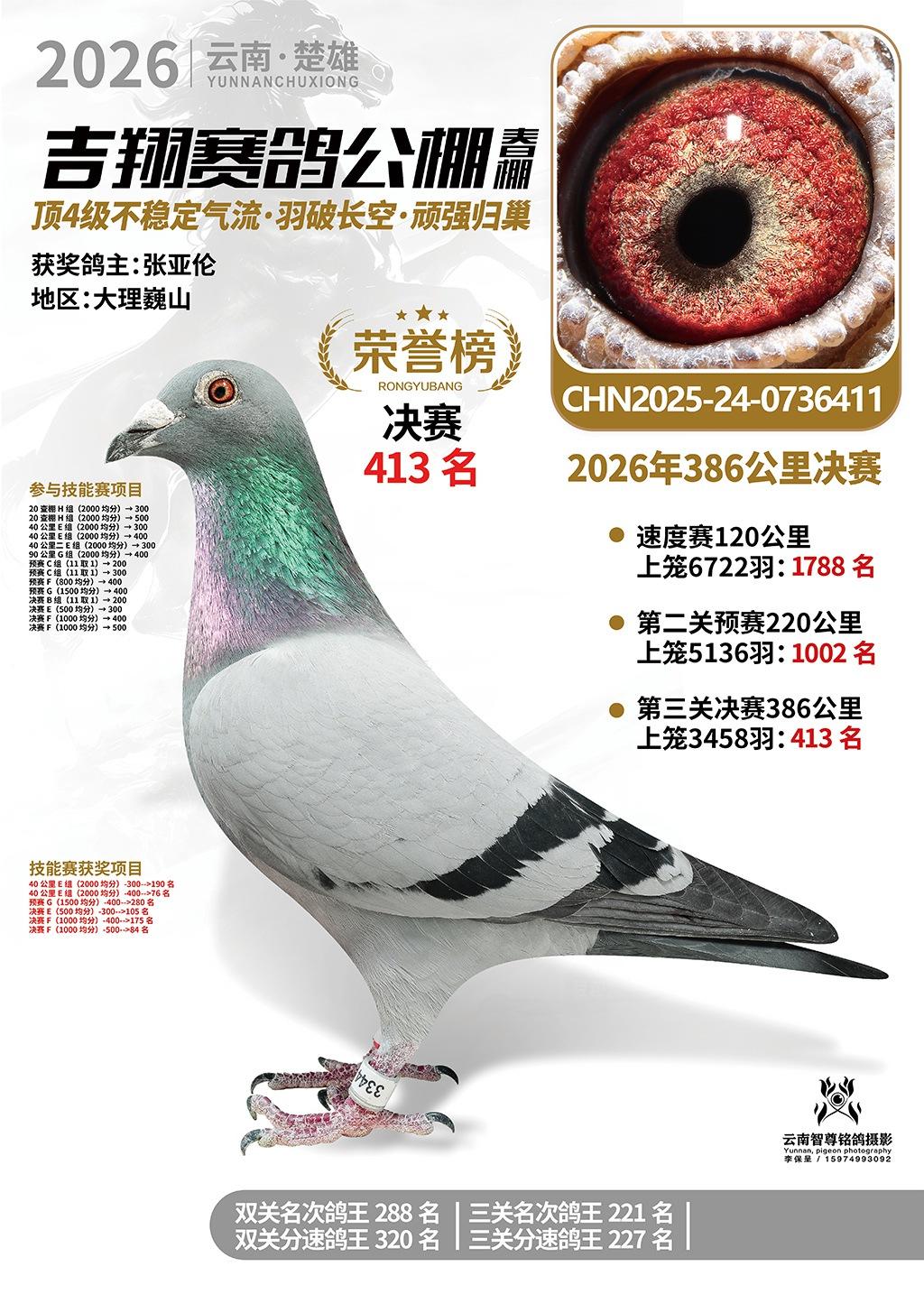 楚雄吉翔公棚(春棚)2026年386公里决赛获奖鸽欣赏