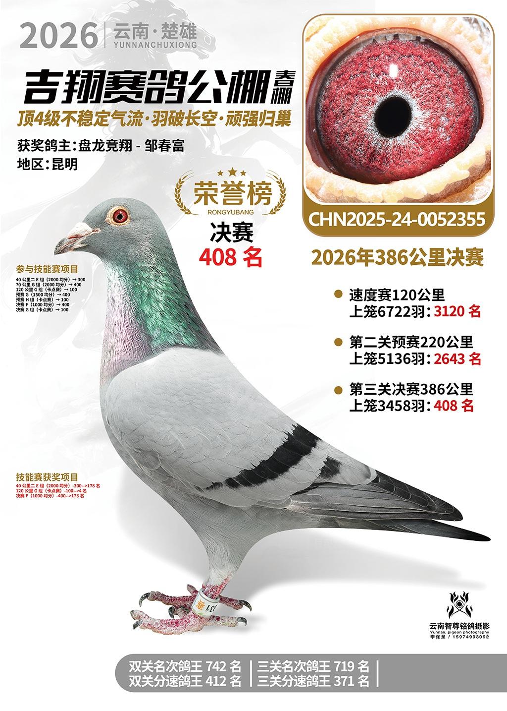 楚雄吉翔公棚(春棚)2026年386公里决赛获奖鸽欣赏