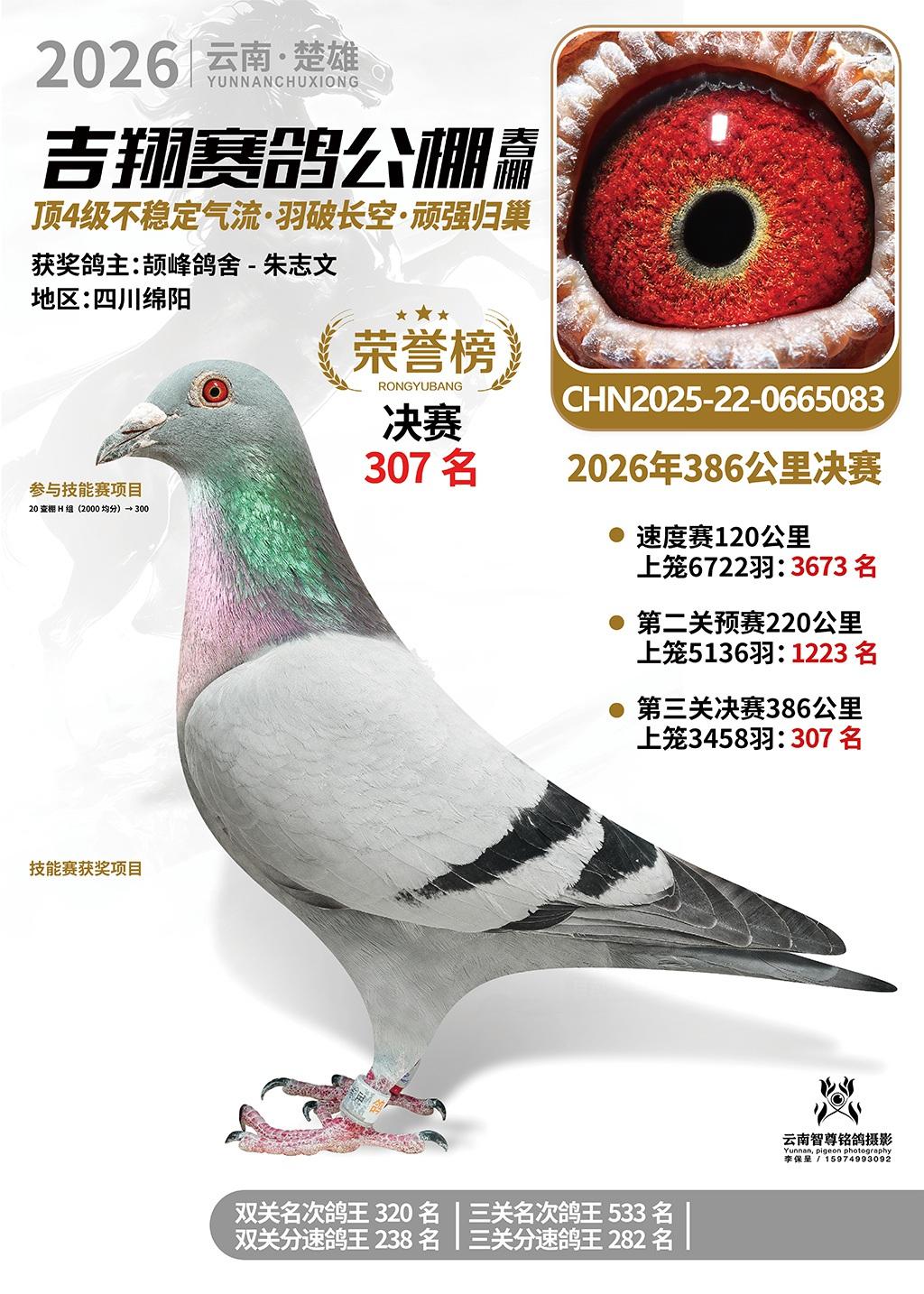 楚雄吉翔公棚(春棚)2026年386公里决赛获奖鸽欣赏