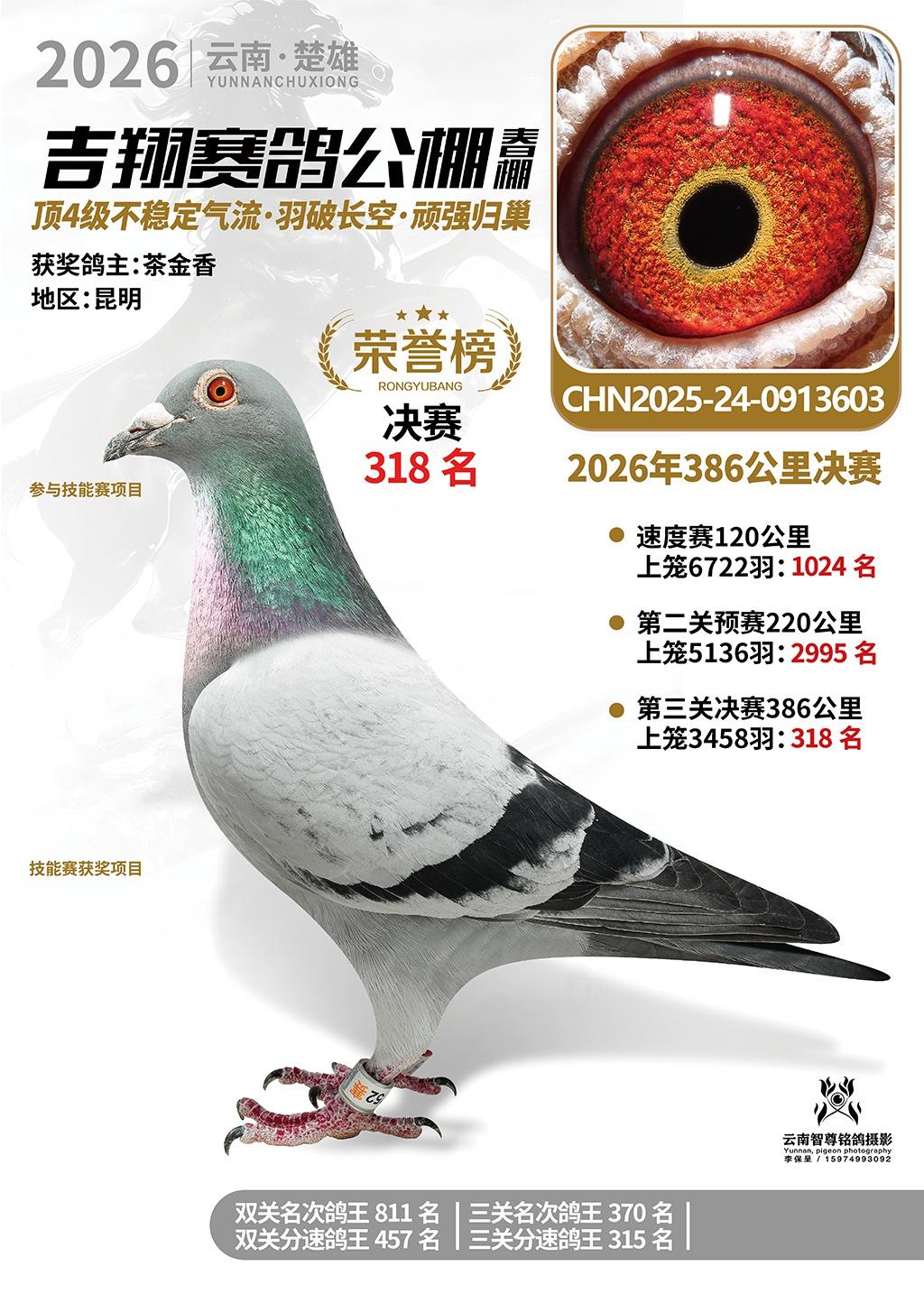 楚雄吉翔公棚(春棚)2026年386公里决赛获奖鸽欣赏