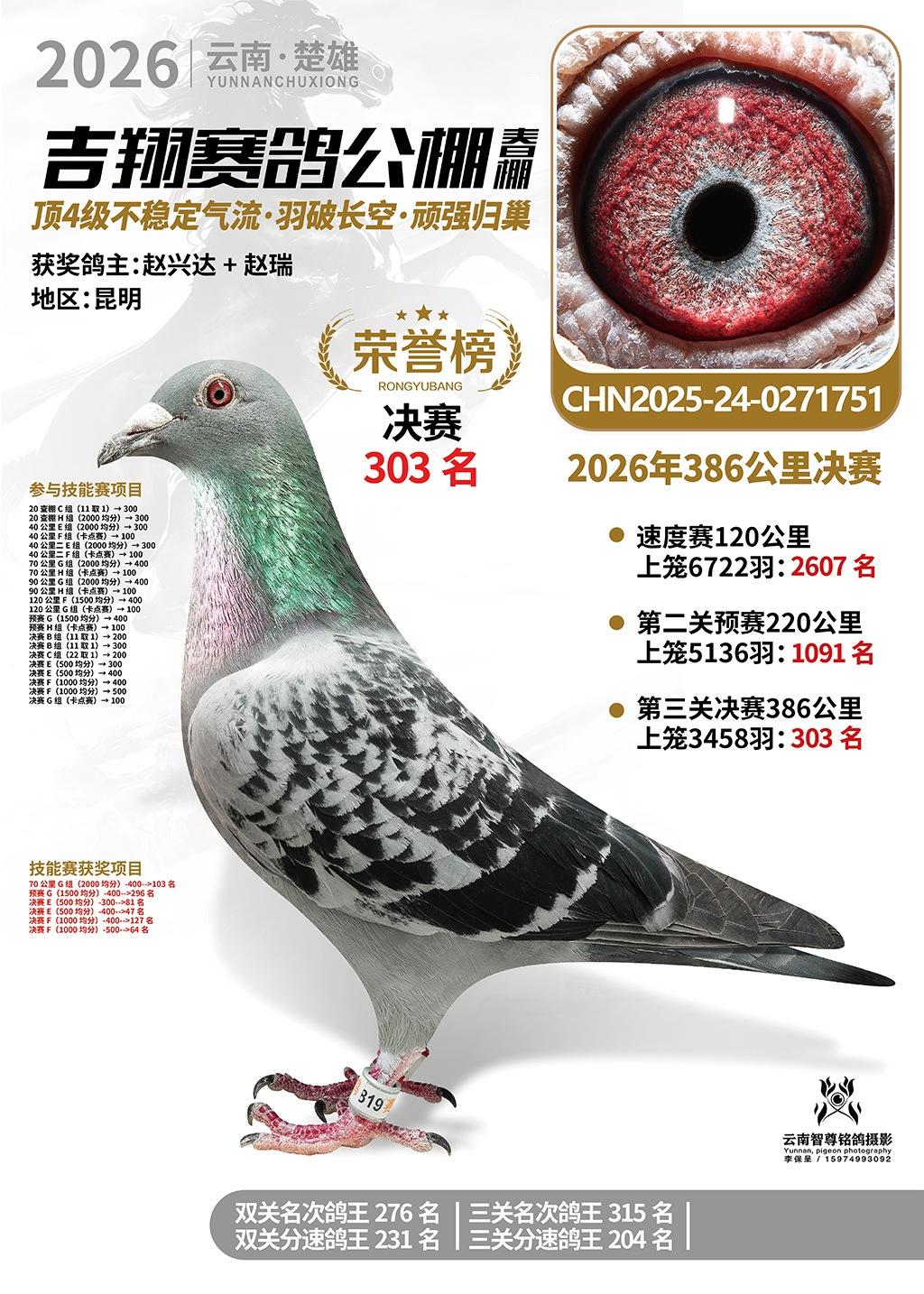 楚雄吉翔公棚(春棚)2026年386公里决赛获奖鸽欣赏