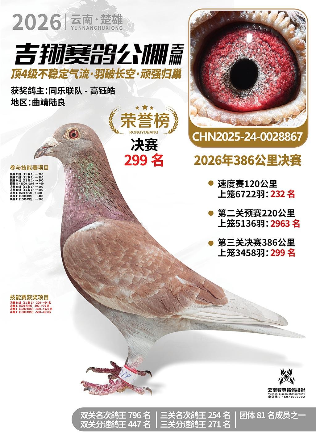 楚雄吉翔公棚(春棚)2026年386公里决赛获奖鸽欣赏