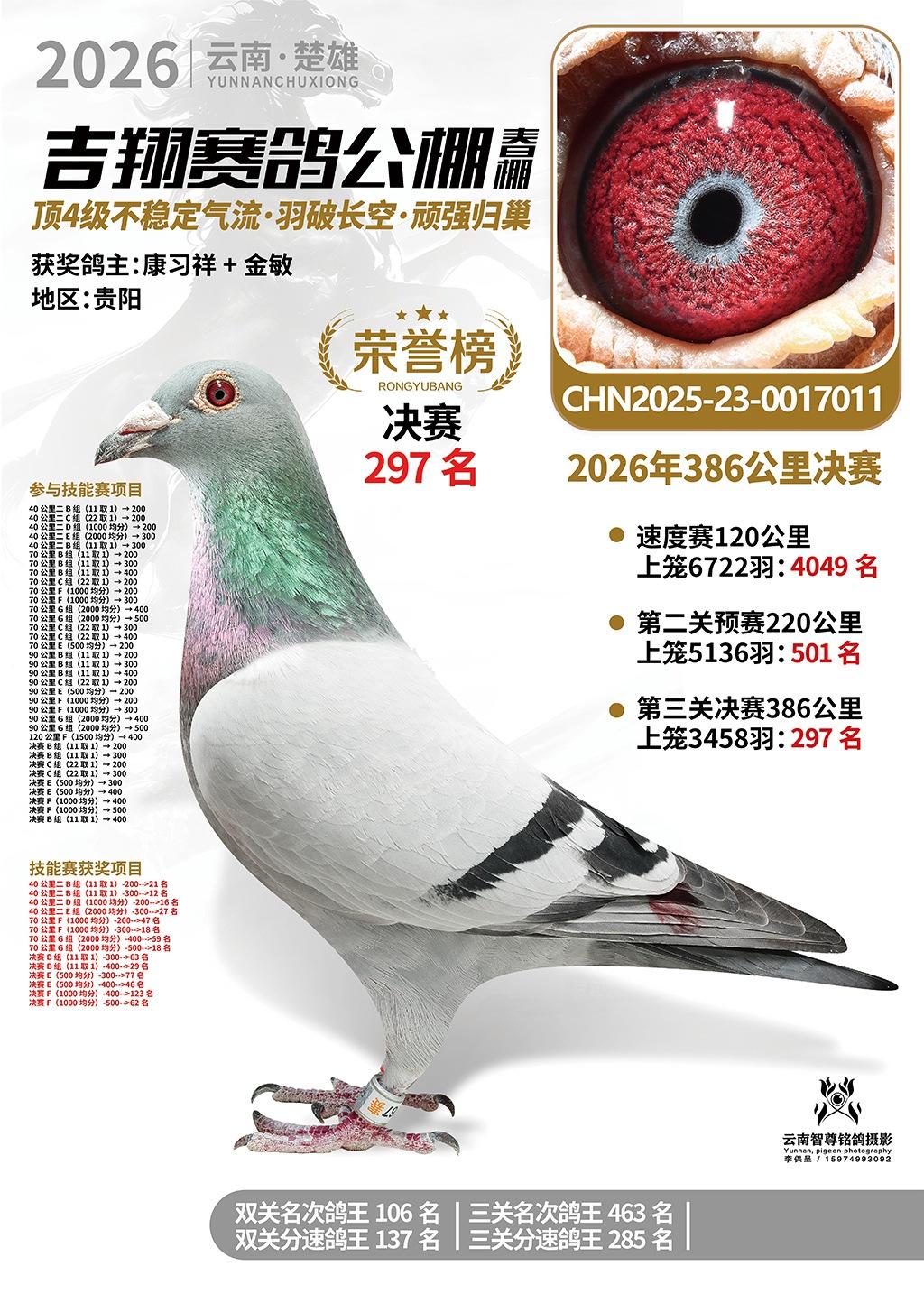 楚雄吉翔公棚(春棚)2026年386公里决赛获奖鸽欣赏