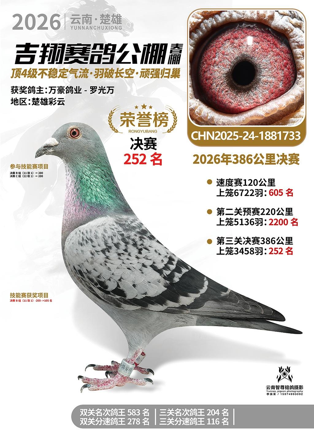 楚雄吉翔公棚(春棚)2026年386公里决赛获奖鸽欣赏