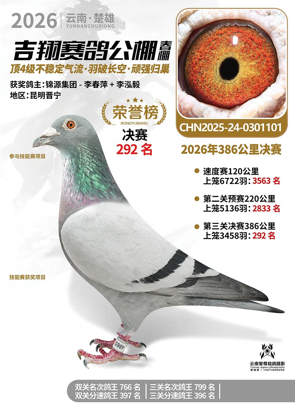 楚雄吉翔公棚(春棚)2026年386公里决赛获奖鸽欣赏