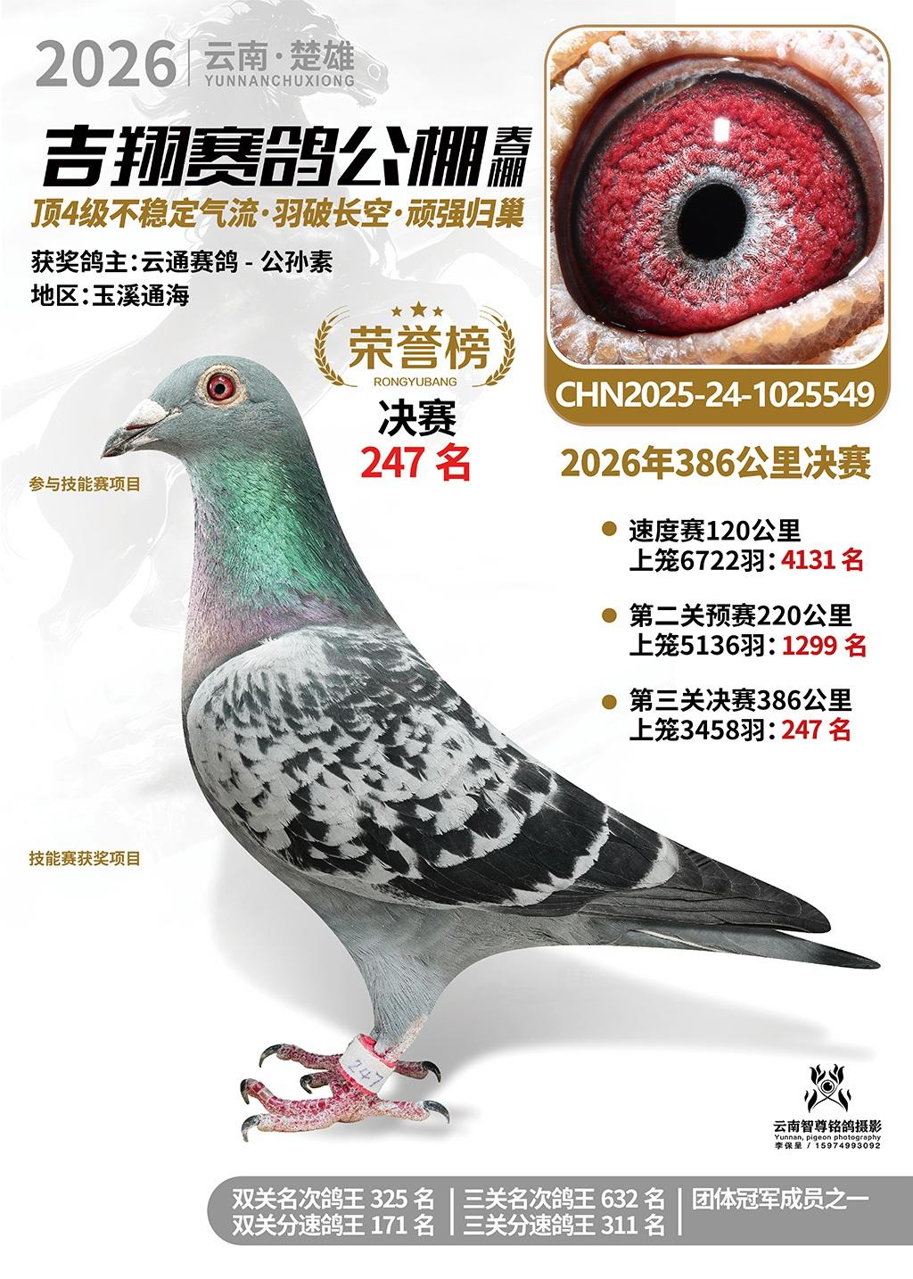 楚雄吉翔公棚(春棚)2026年386公里决赛获奖鸽欣赏