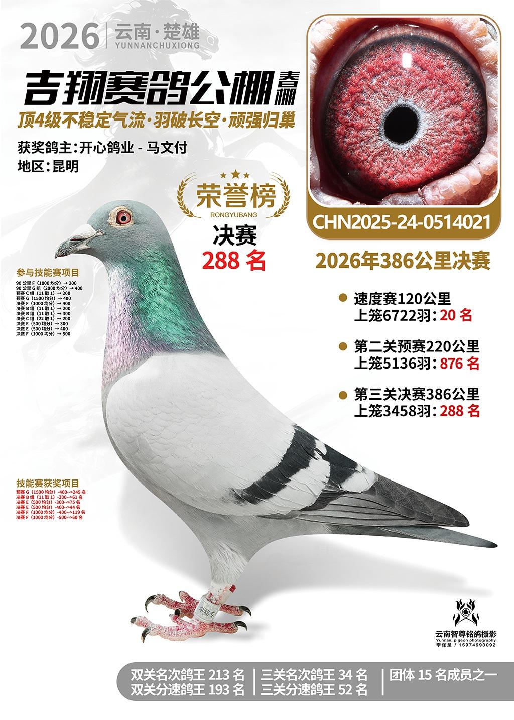 楚雄吉翔公棚(春棚)2026年386公里决赛获奖鸽欣赏