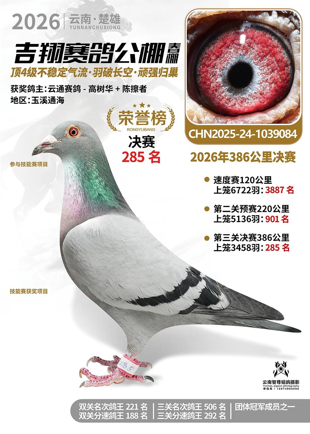 楚雄吉翔公棚(春棚)2026年386公里决赛获奖鸽欣赏
