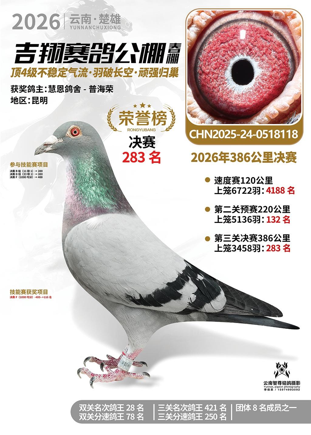 楚雄吉翔公棚(春棚)2026年386公里决赛获奖鸽欣赏