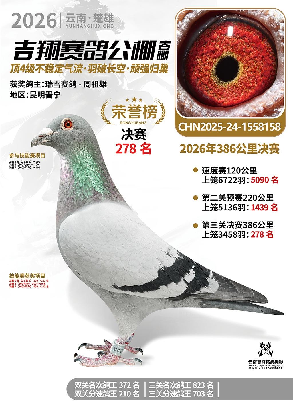 楚雄吉翔公棚(春棚)2026年386公里决赛获奖鸽欣赏