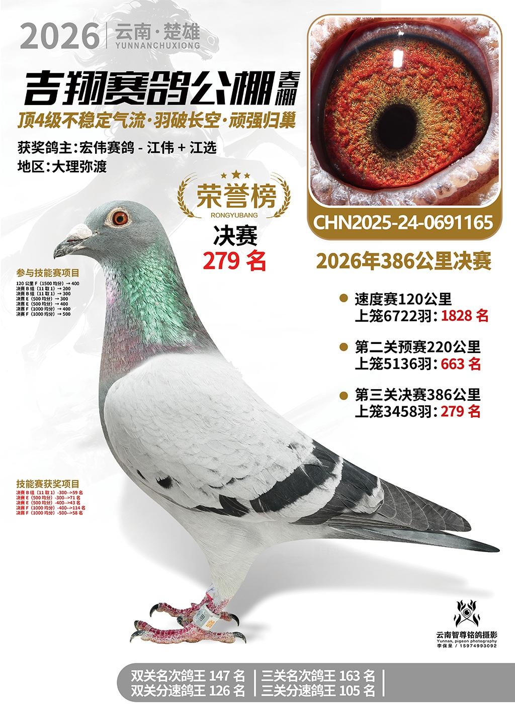 楚雄吉翔公棚(春棚)2026年386公里决赛获奖鸽欣赏