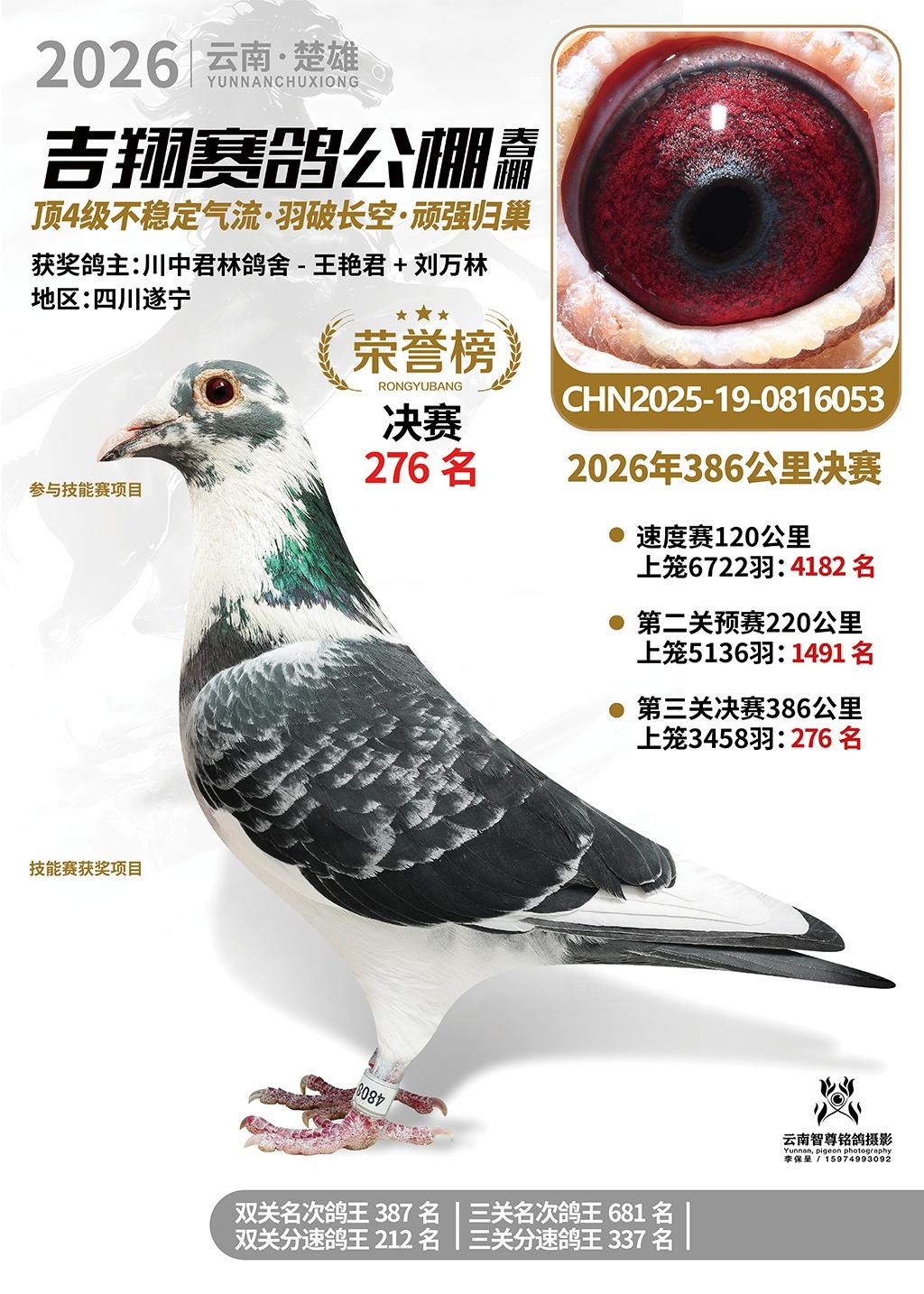 楚雄吉翔公棚(春棚)2026年386公里决赛获奖鸽欣赏