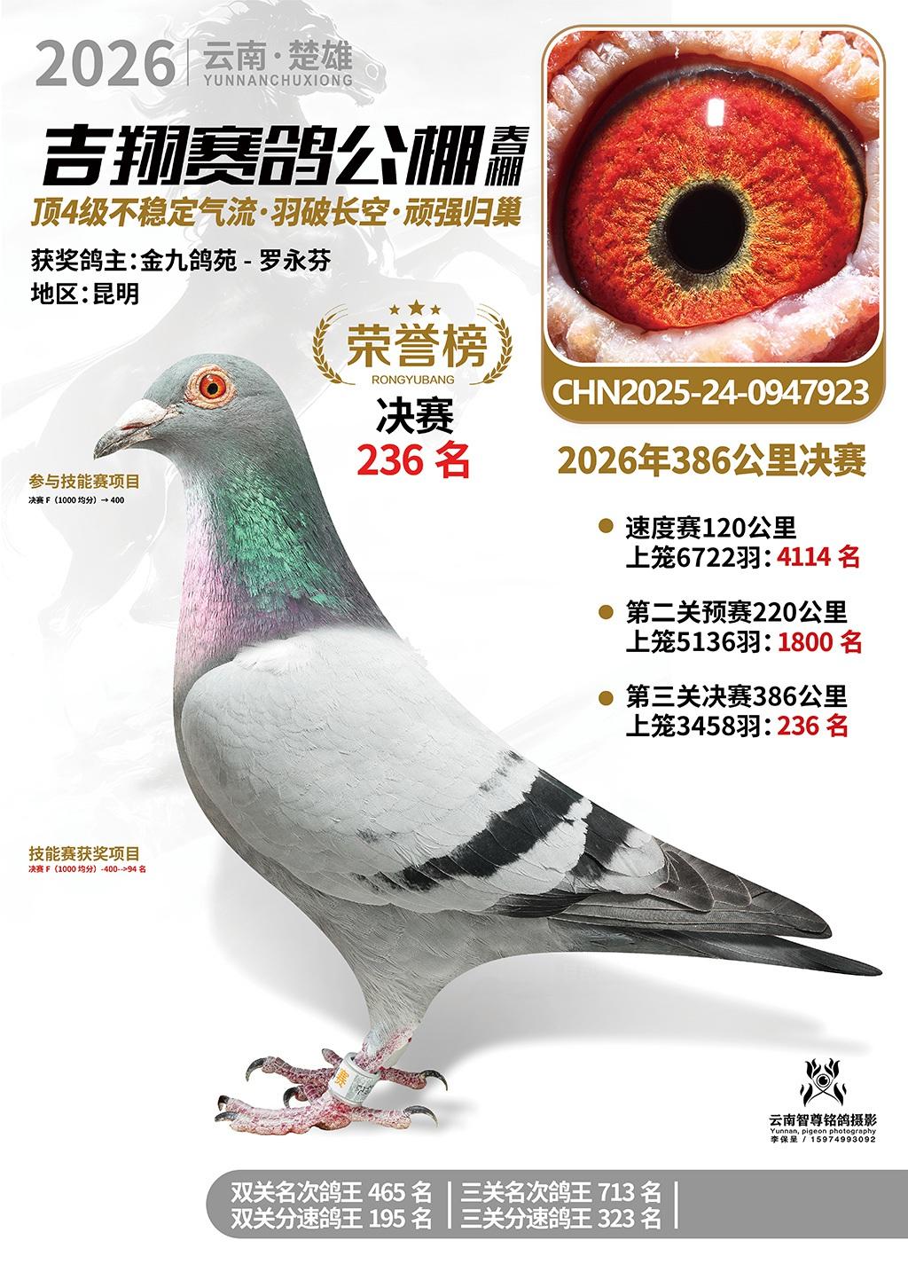 楚雄吉翔公棚(春棚)2026年386公里决赛获奖鸽欣赏