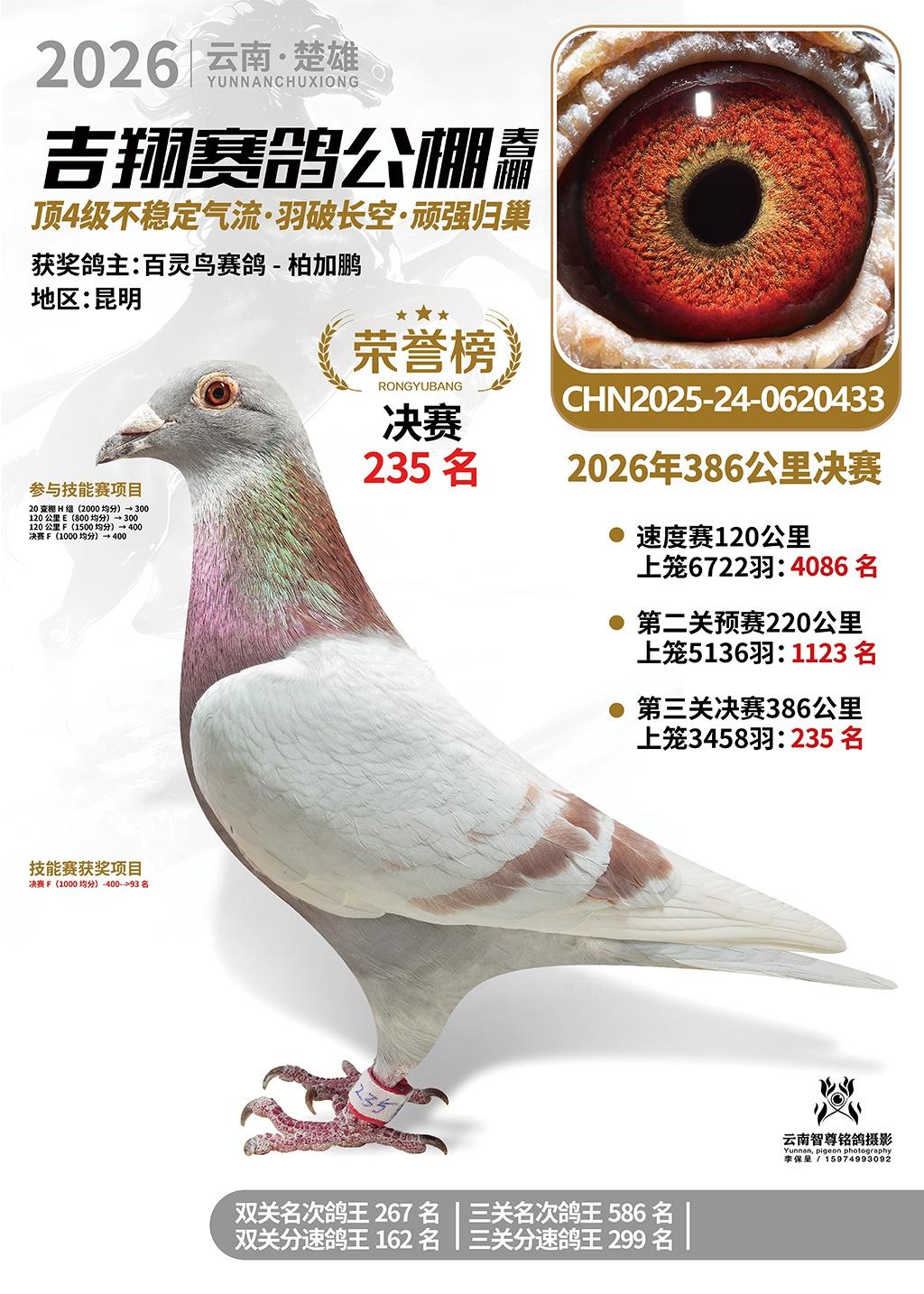 楚雄吉翔公棚(春棚)2026年386公里决赛获奖鸽欣赏