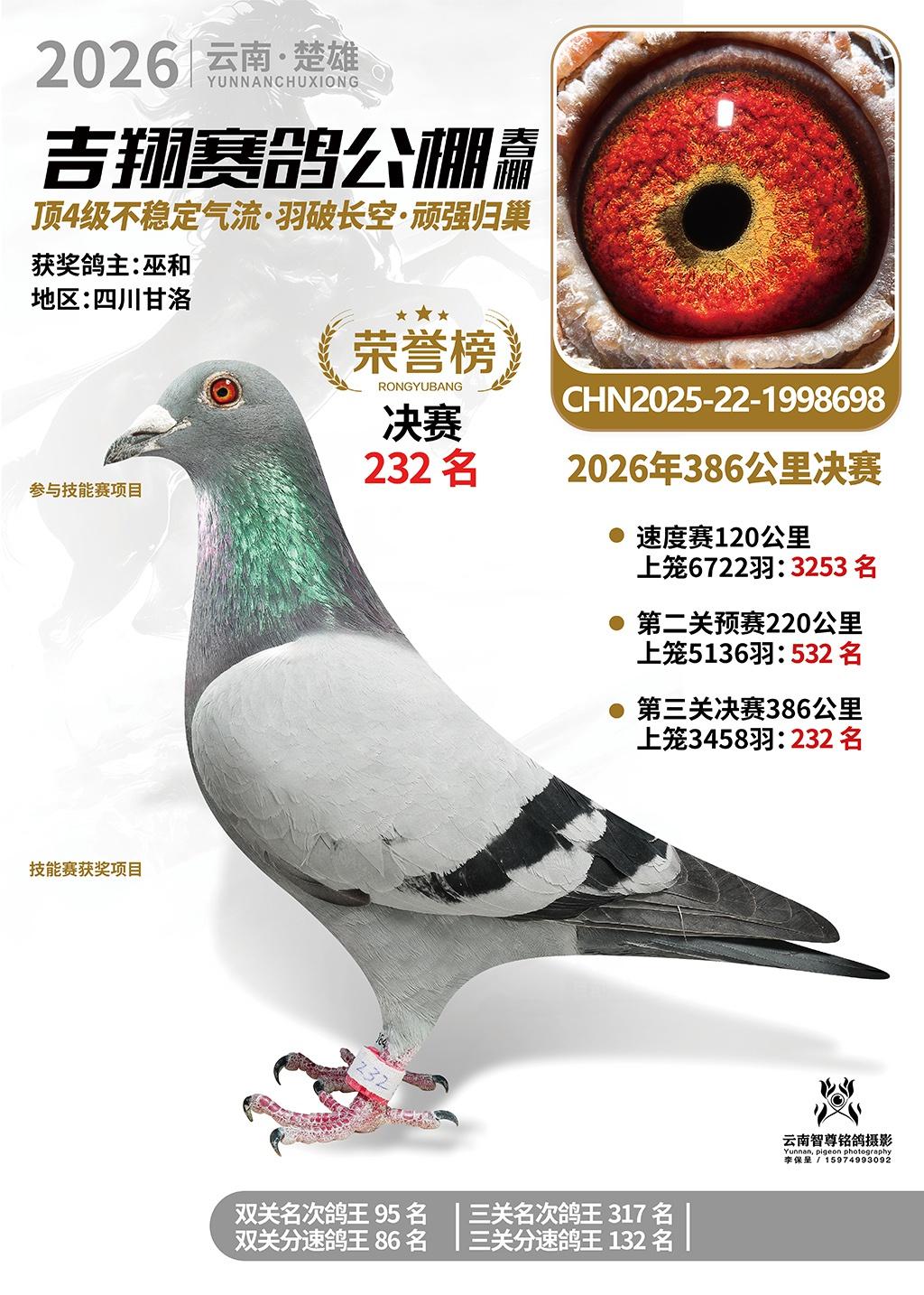 楚雄吉翔公棚(春棚)2026年386公里决赛获奖鸽欣赏