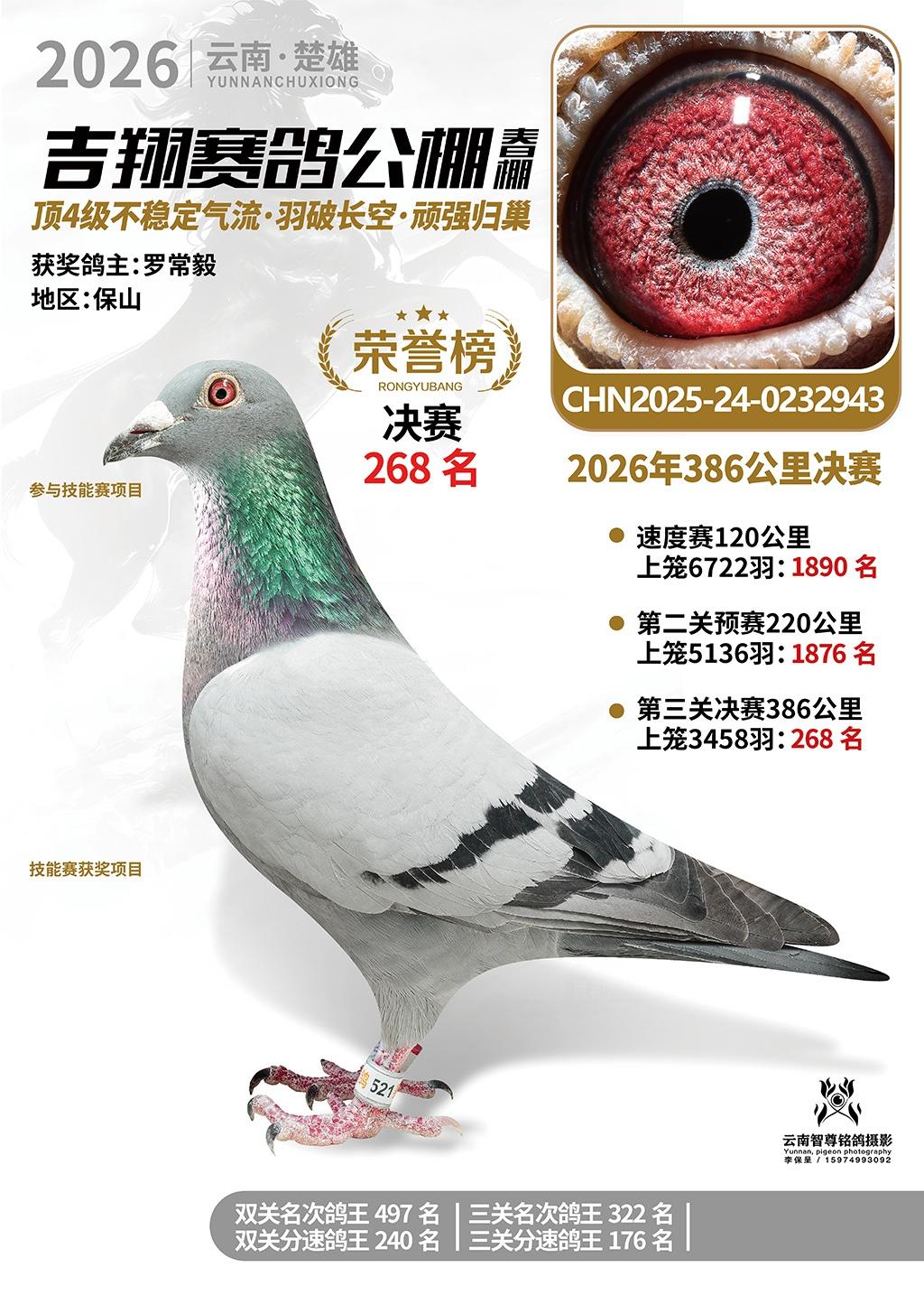 楚雄吉翔公棚(春棚)2026年386公里决赛获奖鸽欣赏