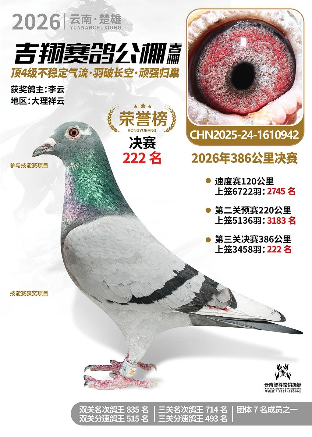 楚雄吉翔公棚(春棚)2026年386公里决赛获奖鸽欣赏