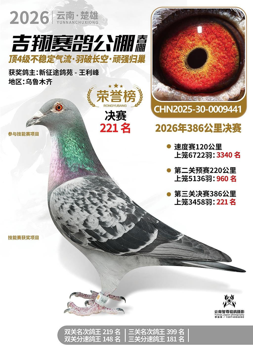 楚雄吉翔公棚(春棚)2026年386公里决赛获奖鸽欣赏