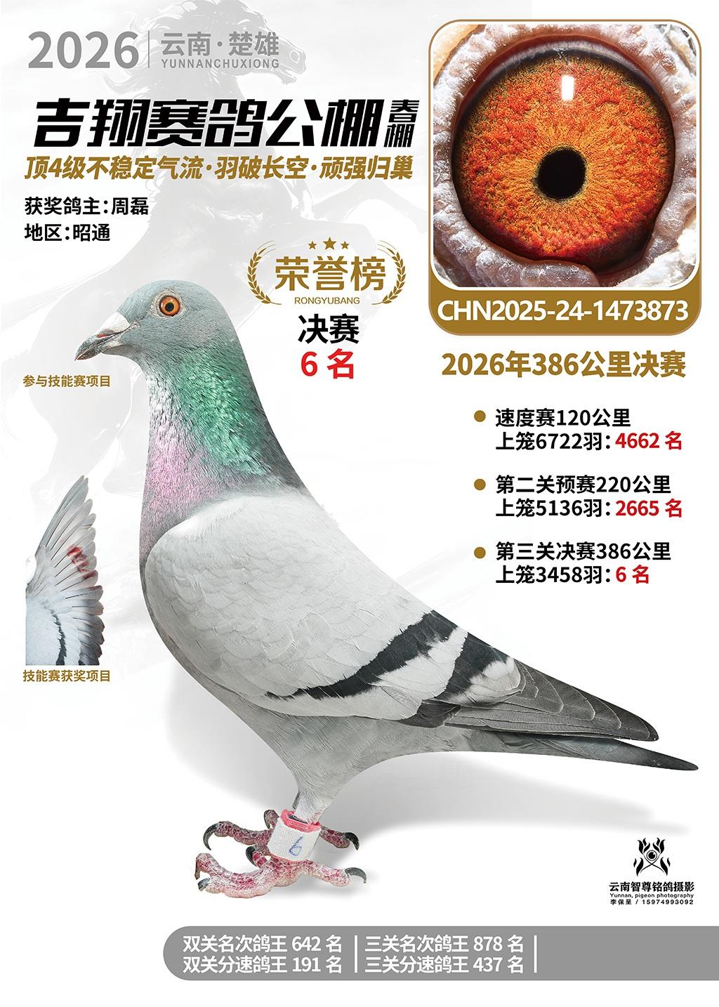 楚雄吉翔公棚(春棚)2026年386公里决赛获奖鸽欣赏