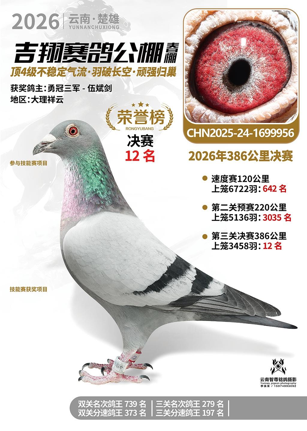 楚雄吉翔公棚(春棚)2026年386公里决赛获奖鸽欣赏