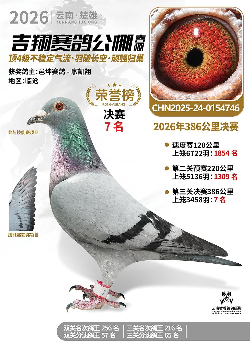 楚雄吉翔公棚(春棚)2026年386公里决赛获奖鸽欣赏