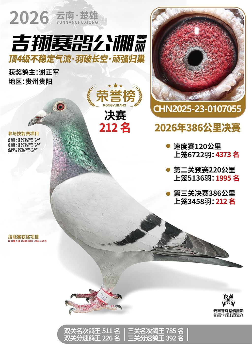 楚雄吉翔公棚(春棚)2026年386公里决赛获奖鸽欣赏