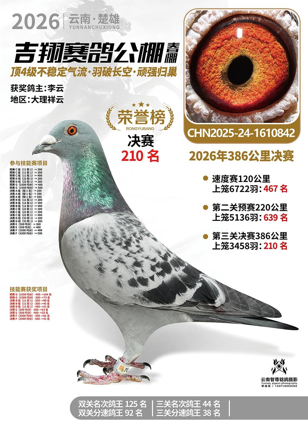楚雄吉翔公棚(春棚)2026年386公里决赛获奖鸽欣赏