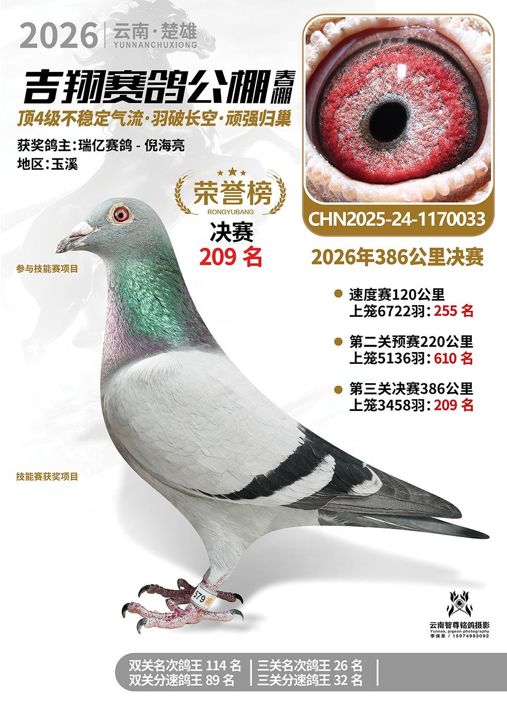 楚雄吉翔公棚(春棚)2026年386公里决赛获奖鸽欣赏