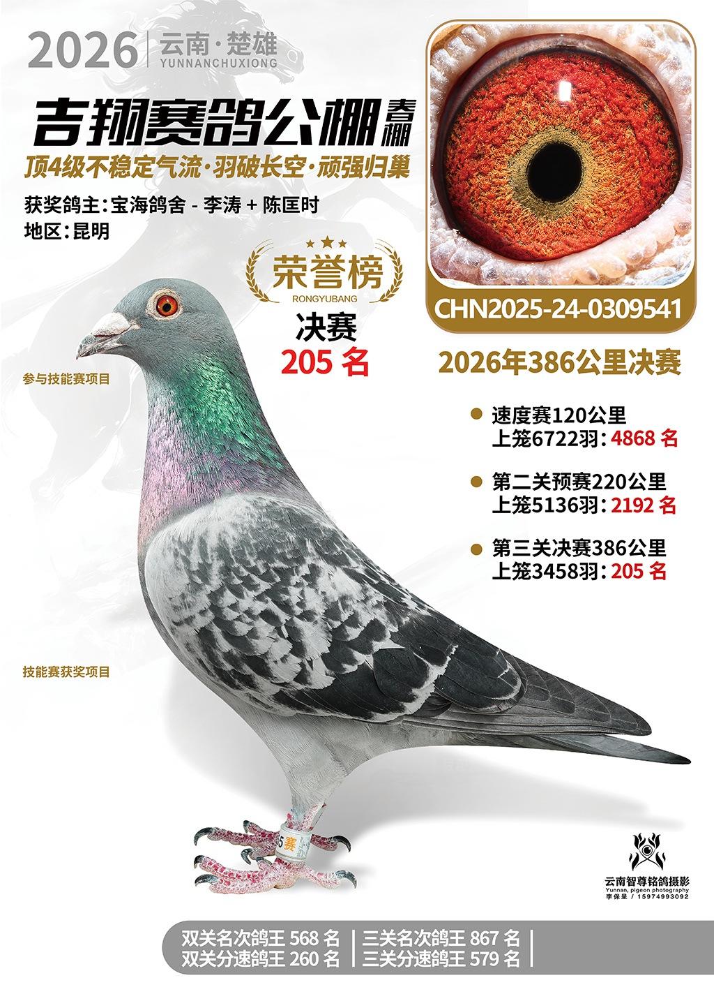 楚雄吉翔公棚(春棚)2026年386公里决赛获奖鸽欣赏