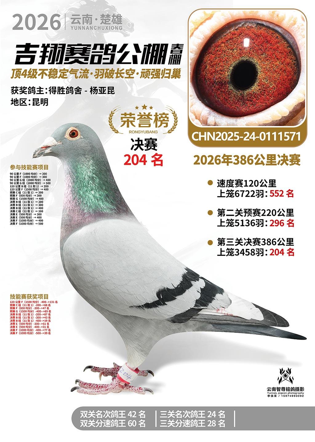 楚雄吉翔公棚(春棚)2026年386公里决赛获奖鸽欣赏