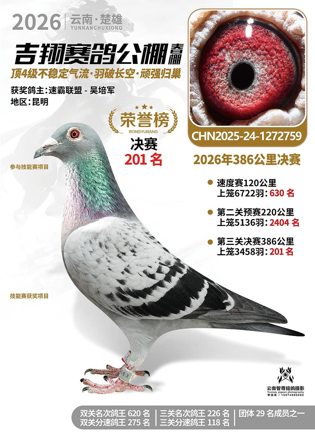 楚雄吉翔公棚(春棚)2026年386公里决赛获奖鸽欣赏