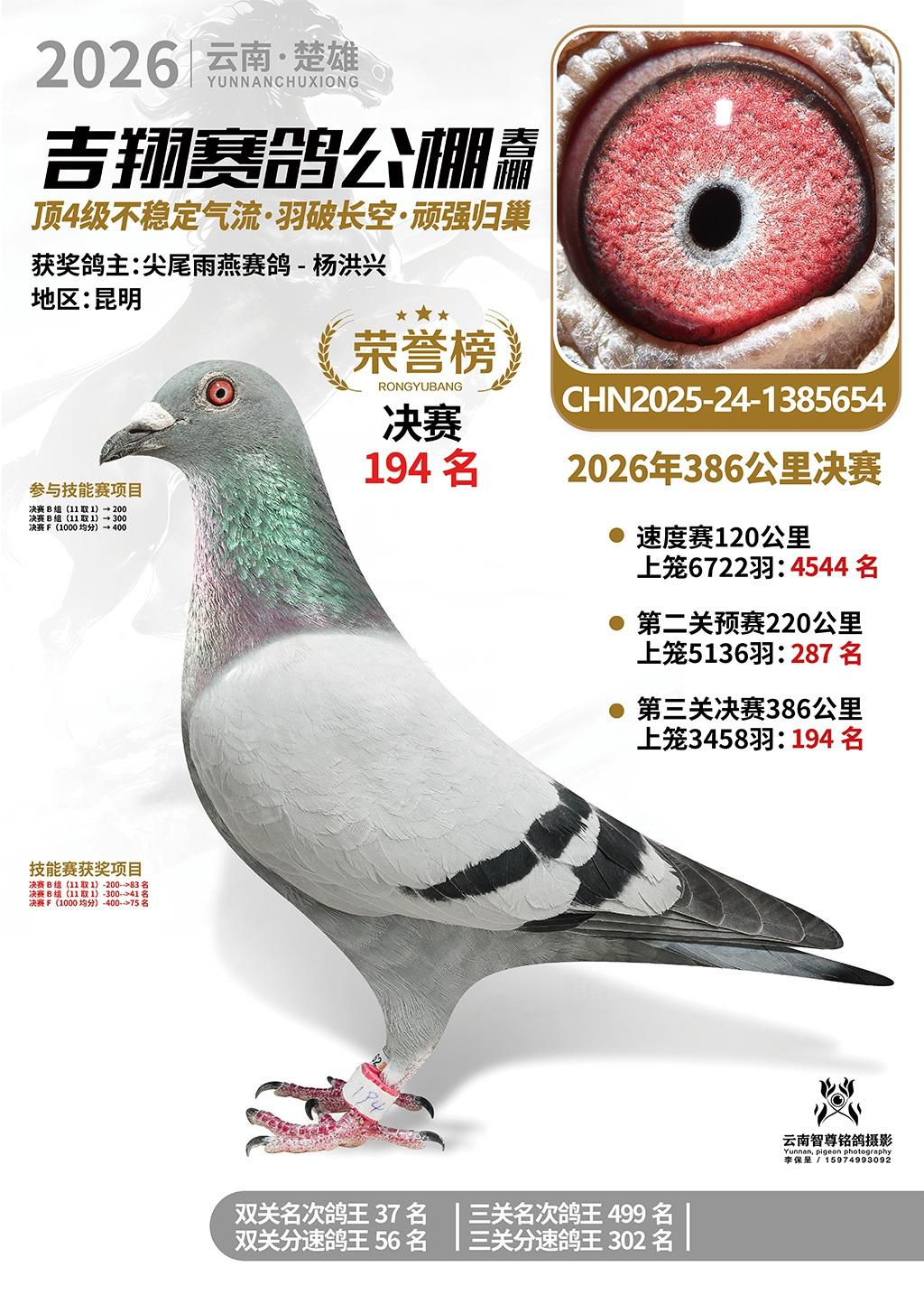 楚雄吉翔公棚(春棚)2026年386公里决赛获奖鸽欣赏