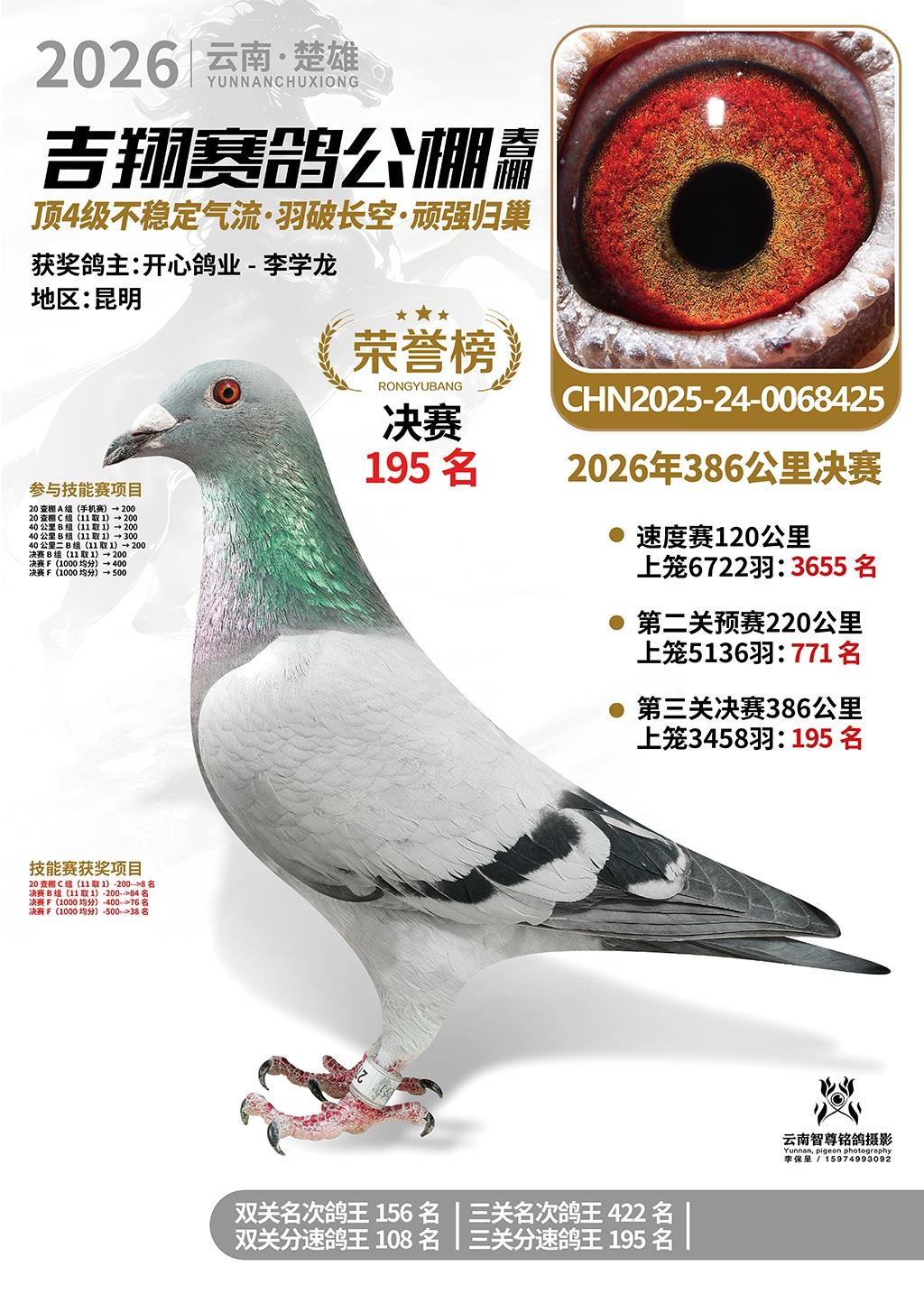 楚雄吉翔公棚(春棚)2026年386公里决赛获奖鸽欣赏