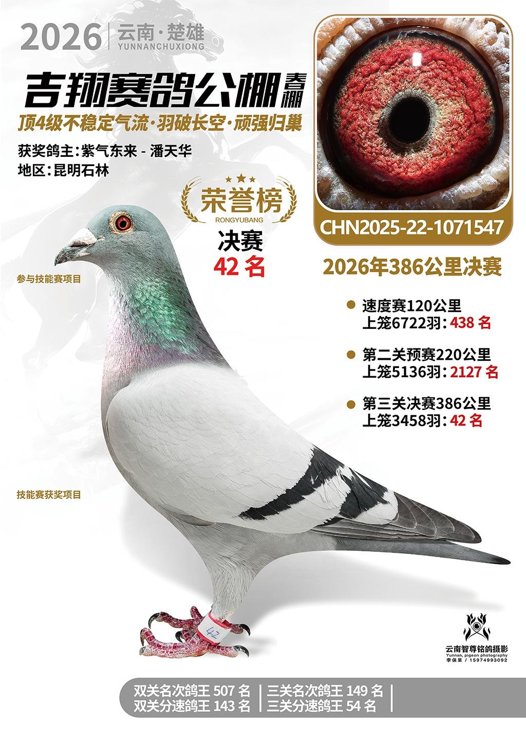楚雄吉翔公棚(春棚)2026年386公里决赛获奖鸽欣赏