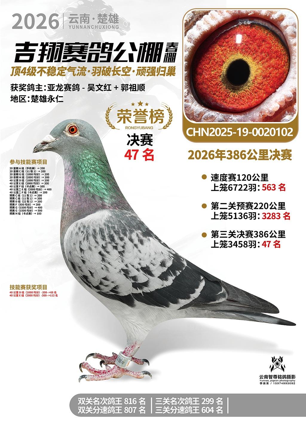 楚雄吉翔公棚(春棚)2026年386公里决赛获奖鸽欣赏