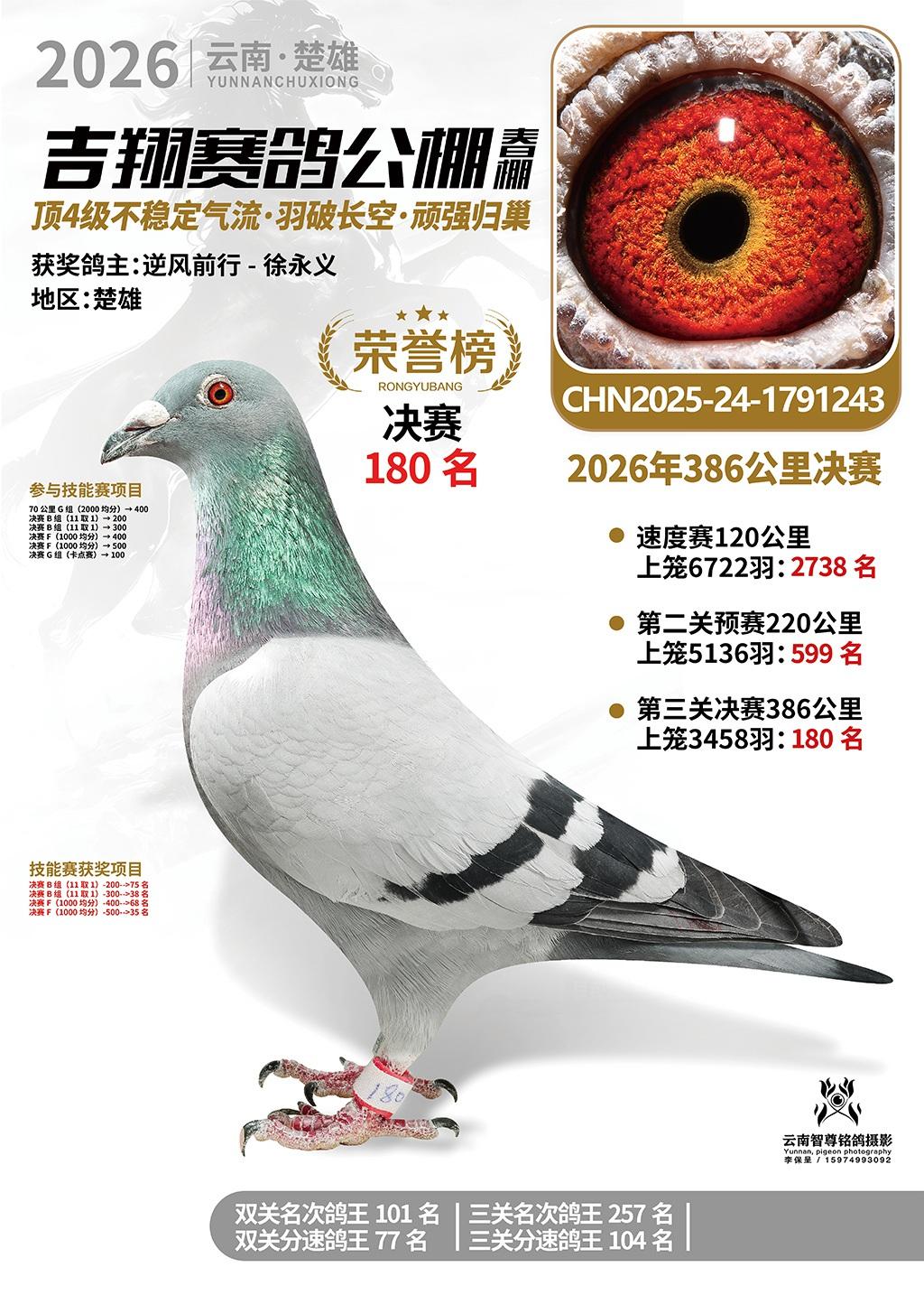楚雄吉翔公棚(春棚)2026年386公里决赛获奖鸽欣赏