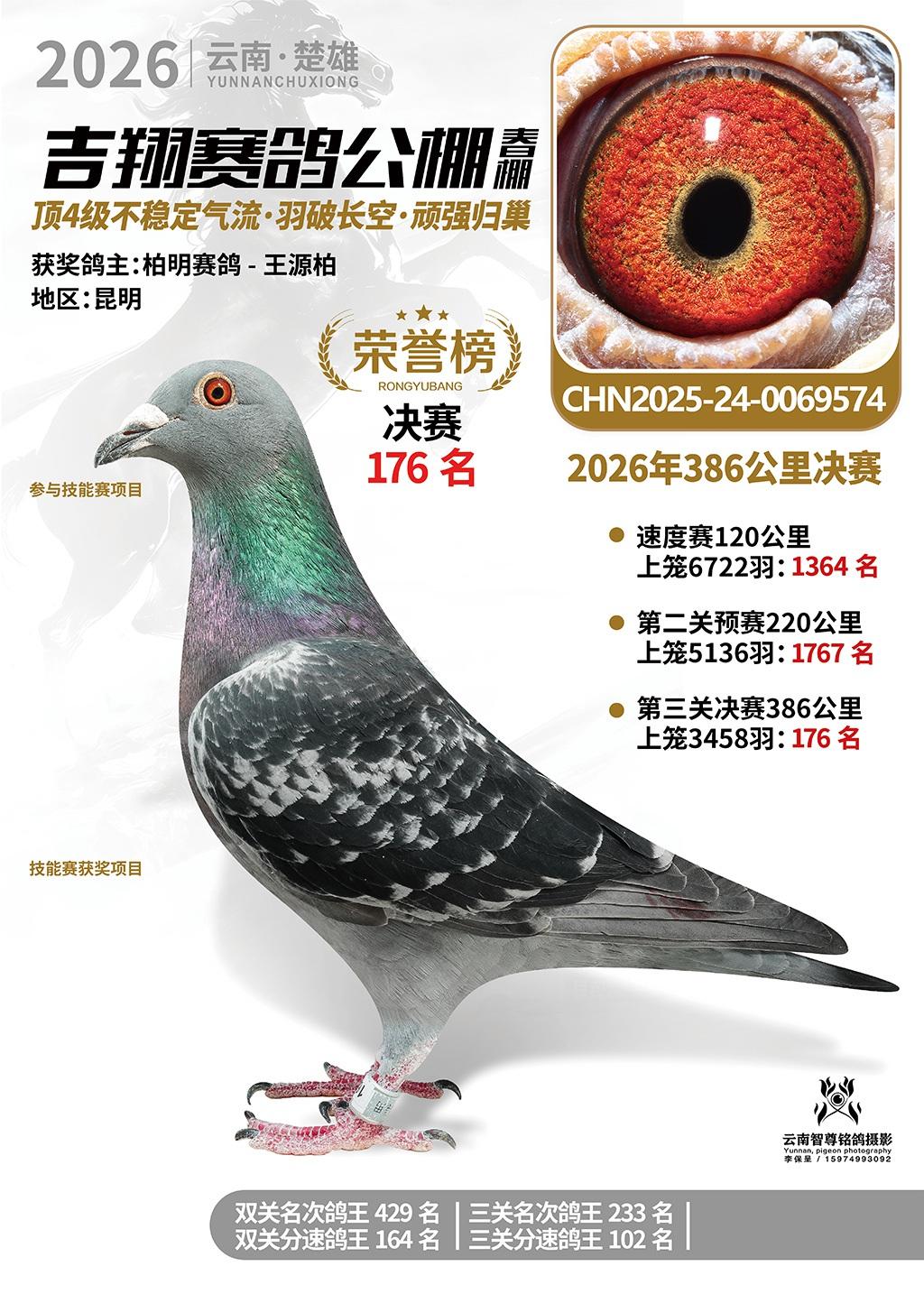 楚雄吉翔公棚(春棚)2026年386公里决赛获奖鸽欣赏
