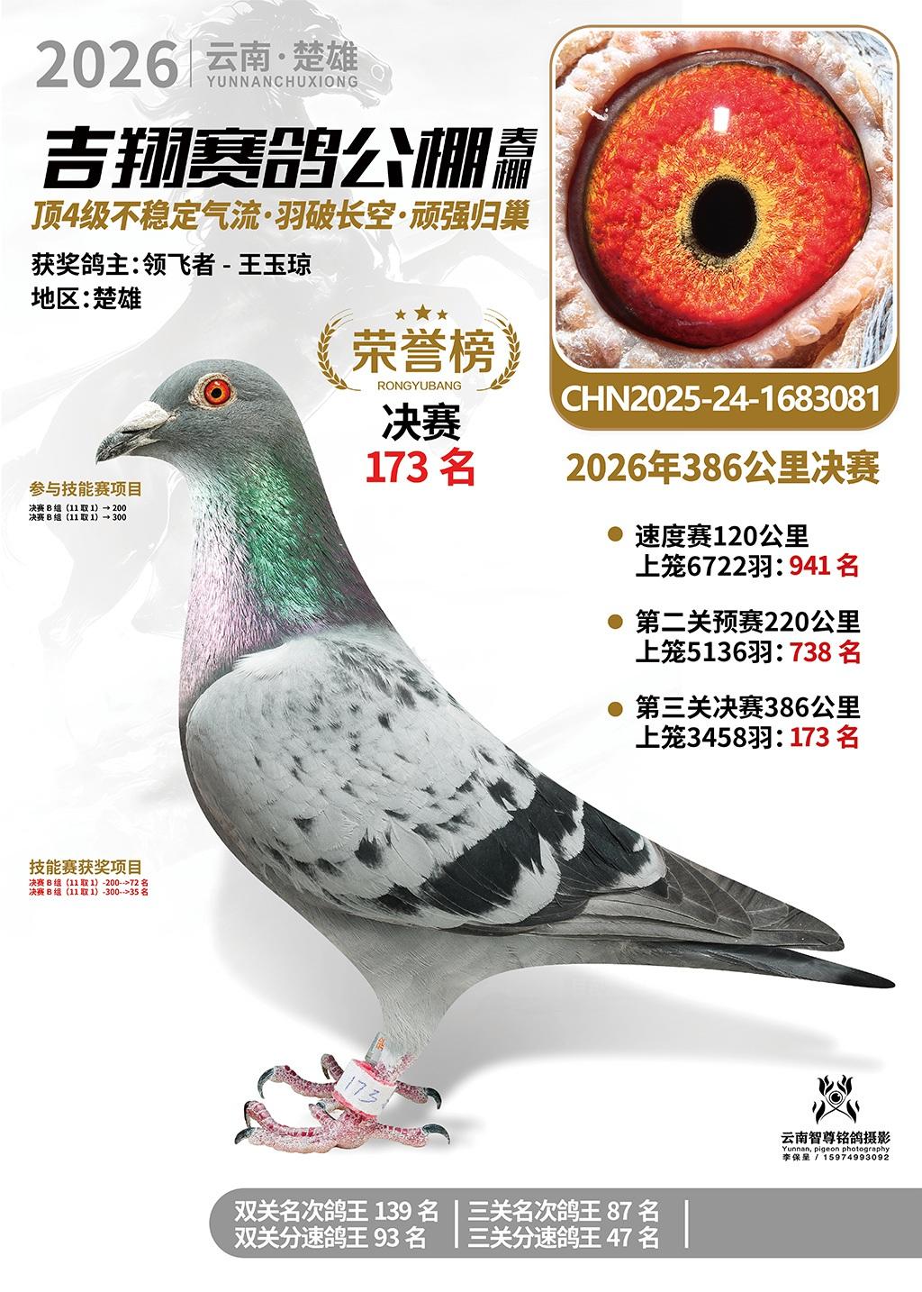 楚雄吉翔公棚(春棚)2026年386公里决赛获奖鸽欣赏