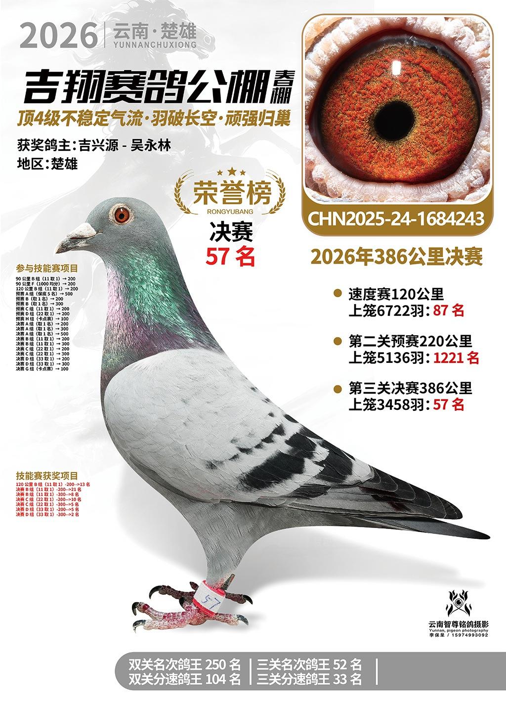 楚雄吉翔公棚(春棚)2026年386公里决赛获奖鸽欣赏
